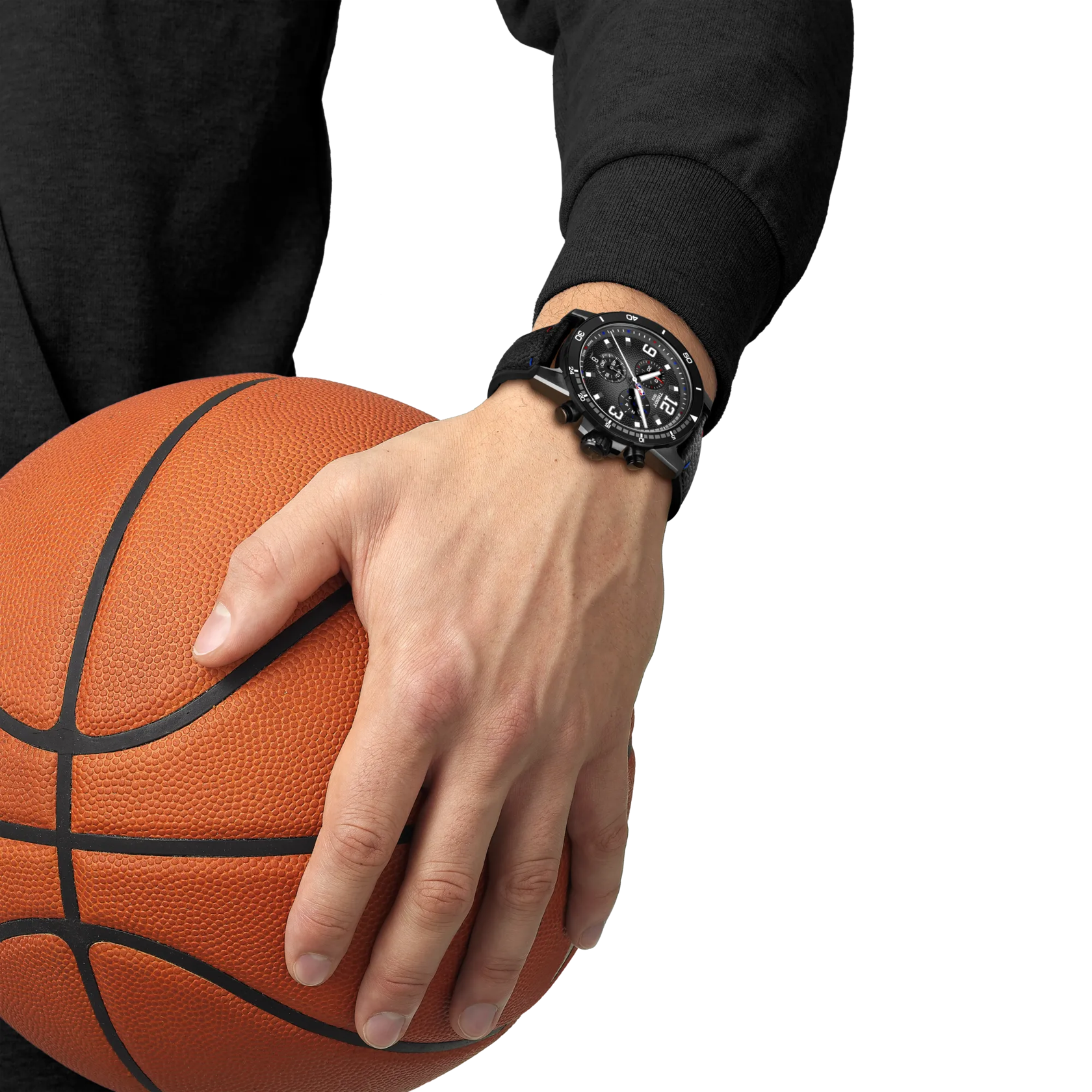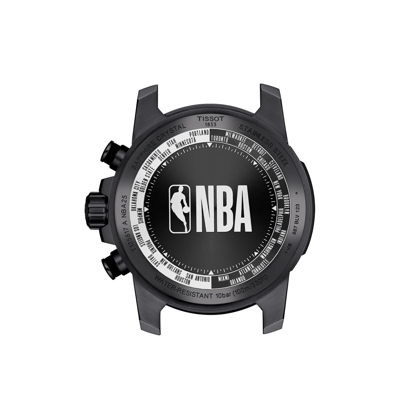 El NBA Supersport Special Edition rinde homenaje al baloncesto repleto de detalles y con un estilo deportivo. La caja de 45 mm de acero inoxidable con revestimiento de PVD negro presenta un bisel que incorpora la regla de los 24 segundos, inspirada en el reloj de tiro de la NBA, con detalles de color que aluden a la liga. La esfera, con un diseño de puntos de baloncesto y un degradado de gris oscuro a negro en los bordes, crea una ilusión de profundidad que refleja la forma del balón. Los índices numéricos, como los de las camisetas de los jugadores, añaden un toque significativo, mientras que el logotipo de la NBA en el segundero es un homenaje más al deporte. El brazalete bimaterial negro complementa la textura de la esfera, haciéndolo perfecto para el uso diario y las actividades físicas. Mientras tanto, el fondo de la caja guarda la verdadera joya oculta: intrincados grabados del logotipo de la NBA, rodeados de las ciudades y estados de los que toman nombre los equipos, tanto de la Conferencia Oeste como de la Este. Este reloj cuenta con un movimiento cronógrafo de cuarzo, que proporciona un cronometraje preciso con un mantenimiento mínimo.